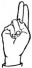 На ћирилици написано АНДЈЕЛИНА КОШУТАРАЦ састоји се из 18 слова [?]. Исписано ћириличном једноручном азбуком за глувонеме: